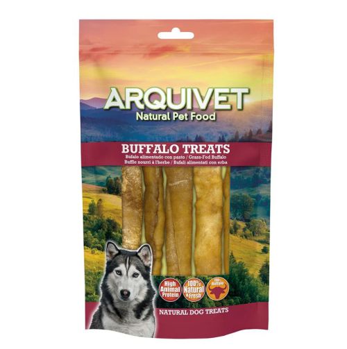 Barritas de colágeno de búfalo, para perros. Un delicioso snack a utilizar como regalo o recompensa, que al mismo tiempo ayuda a mejorar la salud de sus huesos y articulaciones. Sin conservantes ni aditivos, con un alto índice proteico pero bajo en grasas.Los snacks de búfalo son unos snacks naturales y saludables. Muy apetitosos, fáciles de comer y una alternativa cuando se tiene alergias o intolerancias a otras proteínas más comunes.Sin conservantes ni aditivos, con un alto índice proteico pero bajo en grasas.El perro debe ser supervisado en todo momento mientras se alimenta. Mantener en lugar fresco y seco, así como no exponer directamente a la luz solar. Dejar siempre agua dulce y fresca a disposición de su mascota.COMPOSICIÓN: Colágeno de piel de Búfalo.COMPONENTES ANALÍTICOS: Proteína bruta 75% (min.), grasa bruta 0,25% (min.), fibra bruta 1% (max.), humedad 20% (max.). Contenido calórico 3.000 kcal/kg.