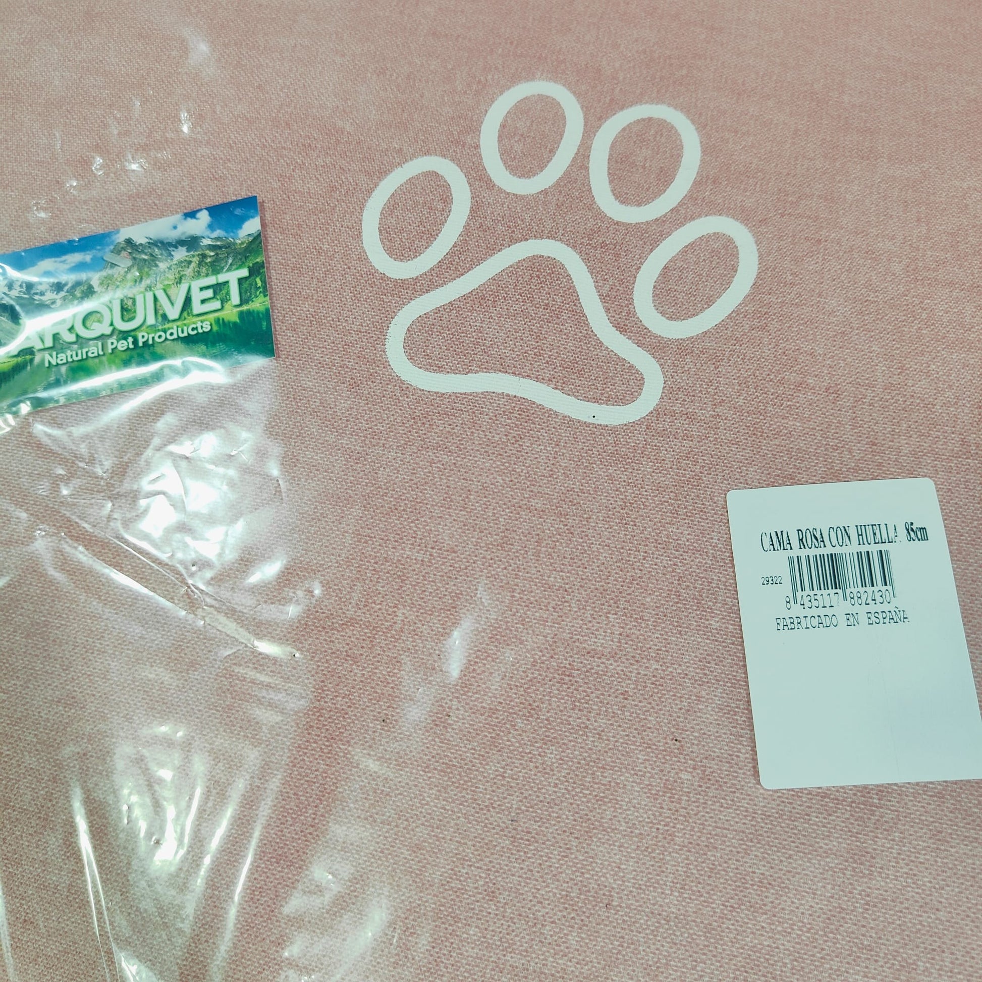Cama cuadrada Rosa con Huella y Ribete 85x68x21cm