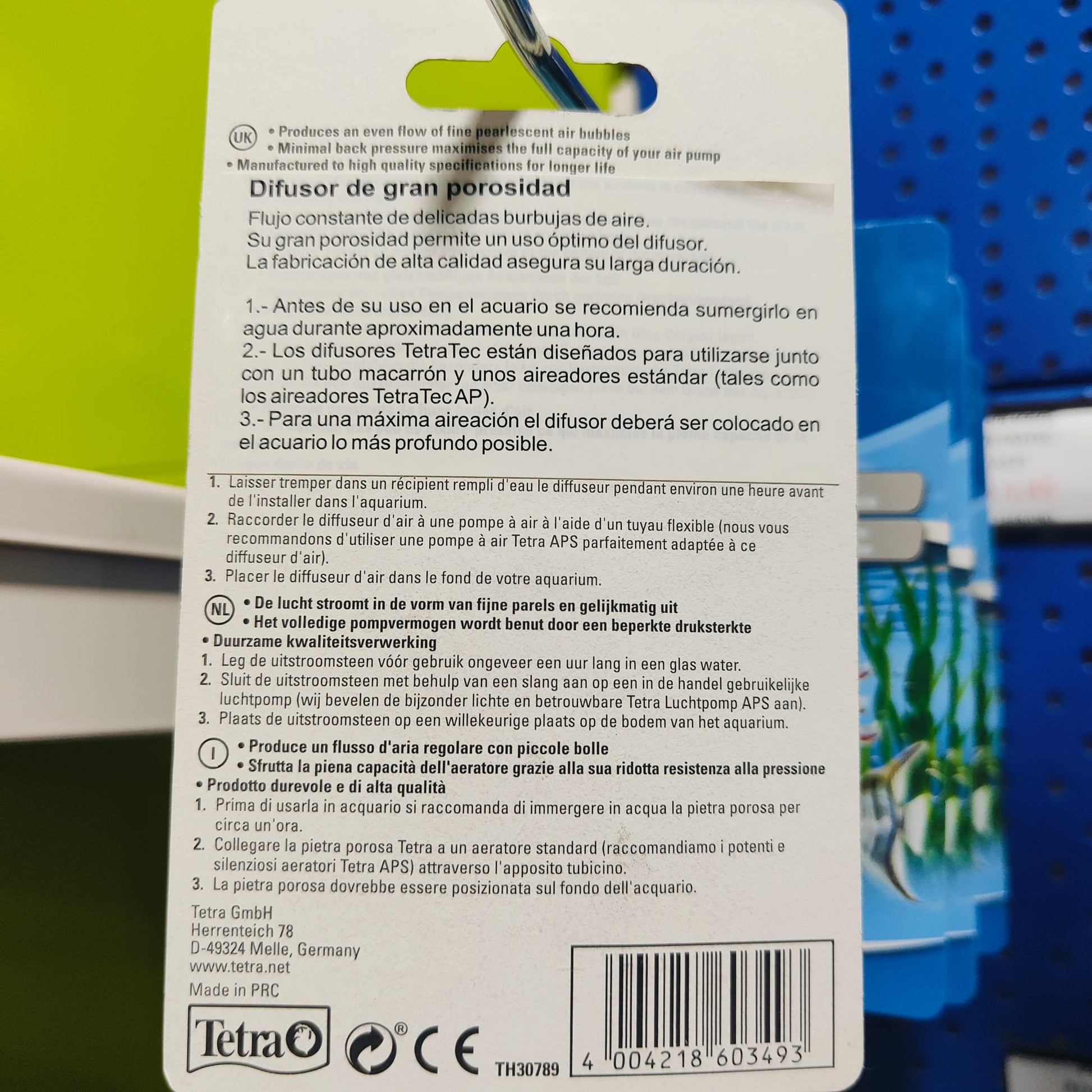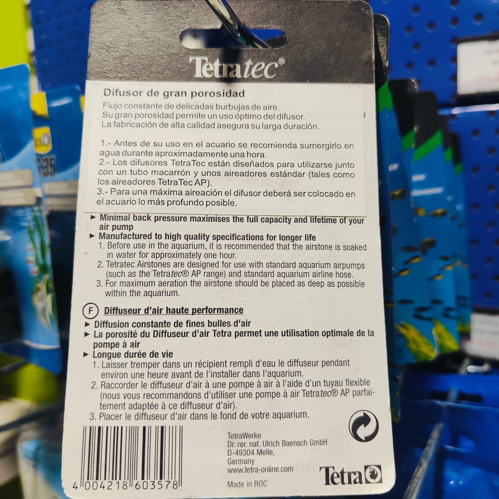 Difusor TetraTec AS25Piedra difusora de finos poros para un óptimo aporte de oxígeno en todos los acuarios.salida del aire uniforme en pequeñas burbujasaprovechamiento de toda la potencia de la bomba por la escasa resistencia a la presiónacabado de calidad con una larga vida útilideal en combinación con las bombas de aire Tetra APSFabricante: Tetra