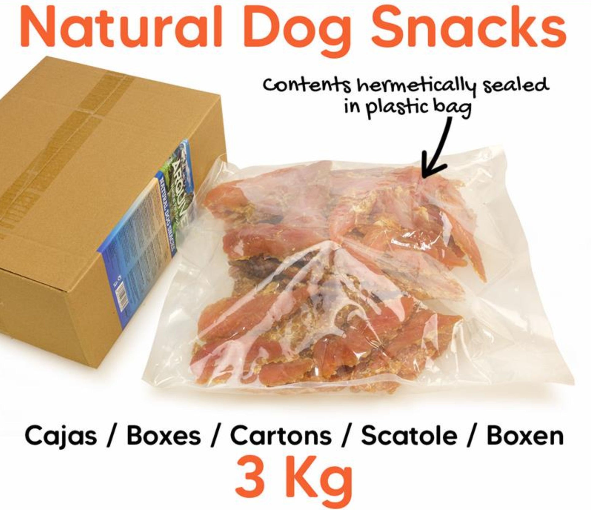 Filete de Pollo a Granel 3 Kg de Arquivet: snack natural y sabroso para tu perro. Alto en proteína, bajo en grasas y 100% natural. Perfecto como premio o complemento dietético para perros de todas las razas. Bolsa con cierre hermético que mantiene el alimento fresco durante más tiempo.