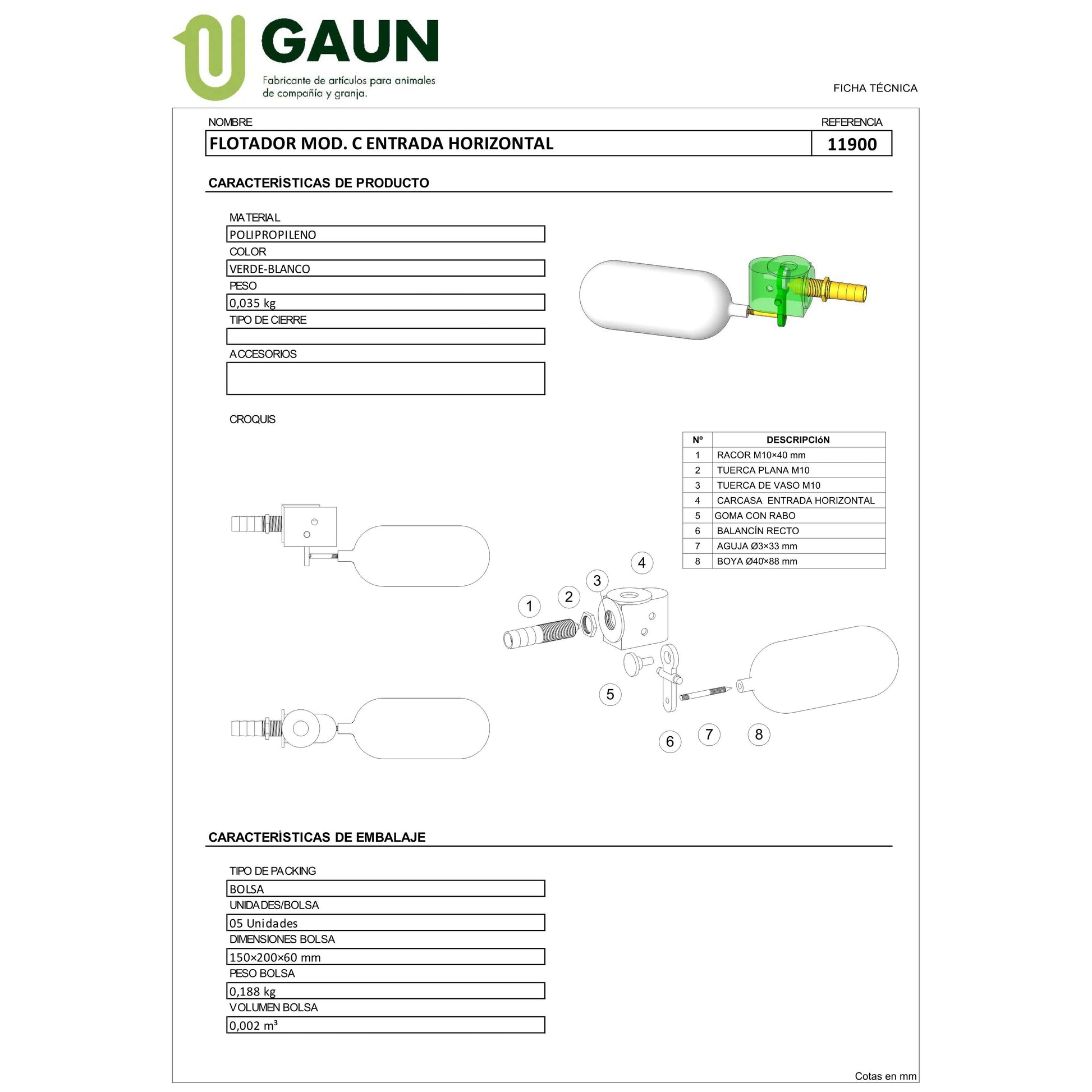 FLOTADOR MODELO C ENTRADA HORIZONTAL