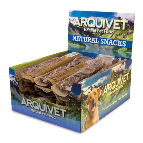 Snack 100% natural para perros elaborado con nervio de cerdo secado y curado dispuesto en forma de trenza que aporta proteinas de orígen animal, digeribles fácilmente por los perros y ayuda a fortalecer la dentadura de los perros.Envasado individualmente.Medida aproximada 20 cm.Composición analítica: Proteínas 74%, Grasas 3,8%, Fibra 0,1%, Humedad 10%, Cenizas 2,3%.Precio por 1 nervio trenzado.