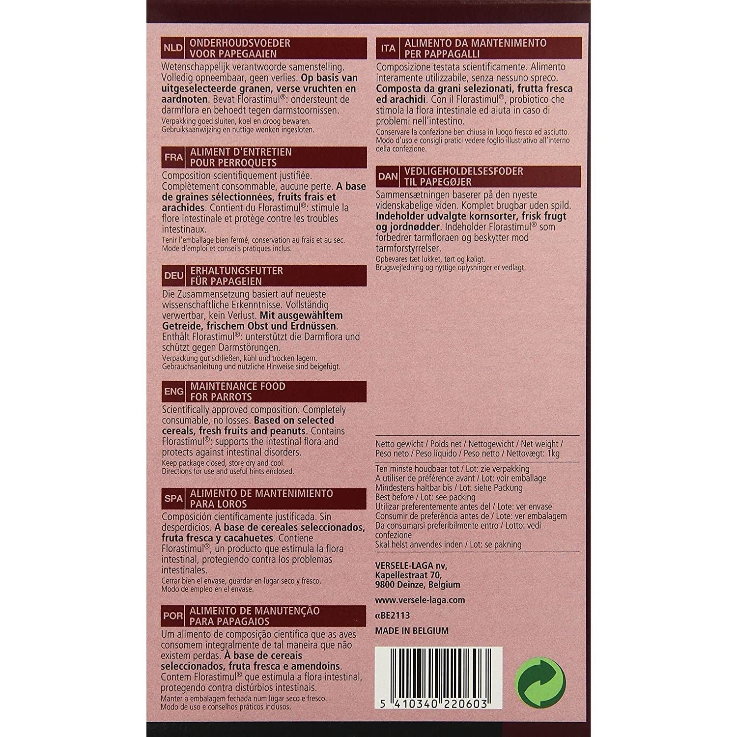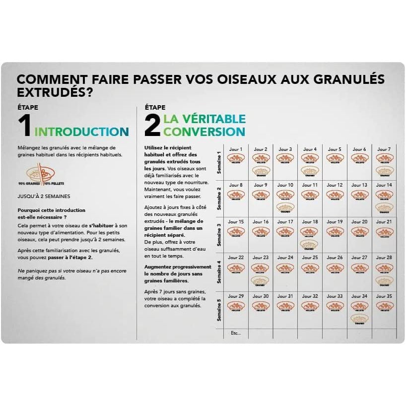 NutriBird P 15 Original es un pienso de mantenimiento completo y equilibrado para papagayos. Son granulados con una composición científicamente probada a base de cereales seleccionados, fruta fresca y cacahuetes. Completamente absorbible, sin desperdicios. Contiene Florastimul, una sustancia que estimula la flora intestinal y protege de los trastornos intestinales. Si su pájaro no está acostumbrado a los alimentos granulados, la transición a esta nueva alimentación deberá ser gradual. Véase la tabla de transición Nutribird.