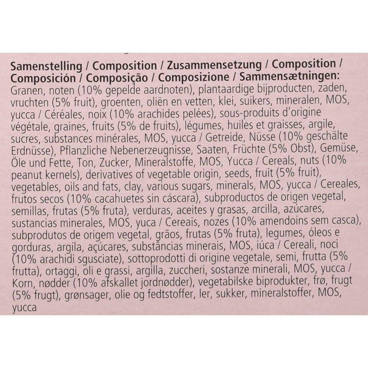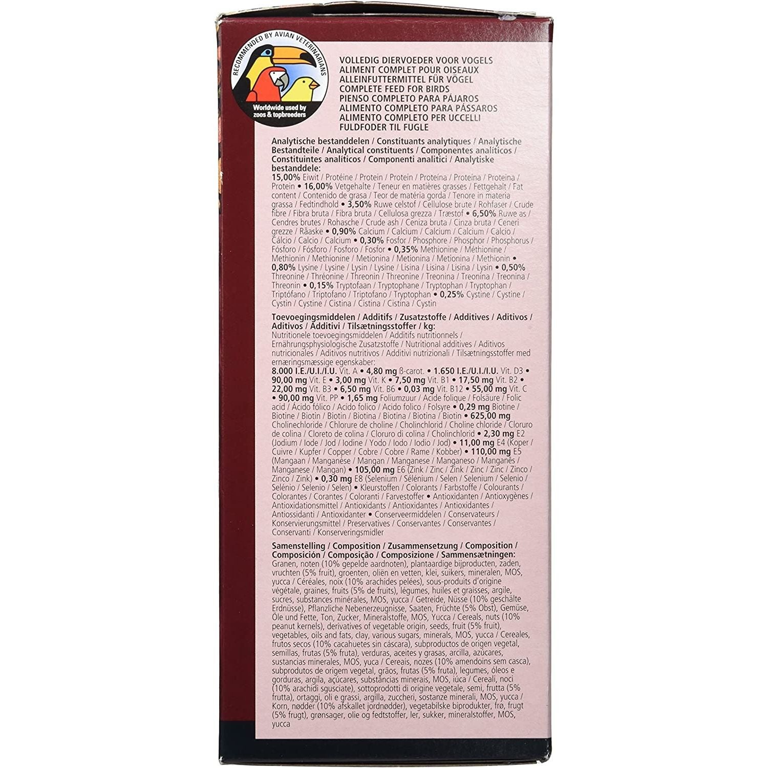 NutriBird P 15 Tropical es un pienso de mantenimiento completo y equilibrado para papagayos. Son granulados con una composición científicamente probada a base de cereales seleccionados, fruta fresca y cacahuetes. Completamente absorbible, sin desperdicios. Contiene Florastimul, una sustancia que estimula la flora intestinal y protege de los trastornos intestinales. Si su pájaro no está acostumbrado a los alimentos granulados, la transición a esta nueva alimentación deberá ser gradual. Véase la tabla de transición Nutribird.