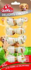 Delights, la forma patentada, divertida y saludable de cuidar de su perro.Sabroso pollo envuelto en piel de vaca dura masticable.¡Tan exclusivas que están patentadas!Satisface el instinto natural del perro por mastifcar,La acción de masticar limpia los dientes, elimina la placa y evita la formación de sarro.No contiene colorantes artificiales ni potenciadores del sabor.Sólo 2% de grasaConsejo de alimentación: como Snack adicionalmente a las comidas diarias. siempre debería haber un cuenco con agua fresca. Supervise a su perro mientras mastica. Pienso complementario para perros.Composición: Carnes y subproductos animales (carne de pollo 10%), Sustancias minerales.Componentes analíticos: Proteína bruta 82,0%, Aceites y grasas brutos 2,0%, Fibras brutas 1,0%, Ceniza bruta 2,0%, Contenido de humedad 14,0%.