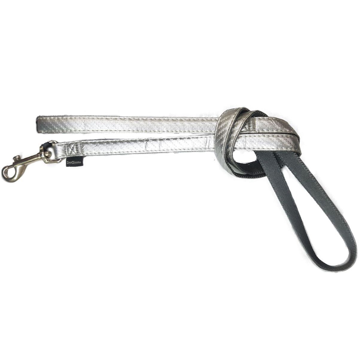 Ramal Diamsilv plateado para perro de raza mediana hasta 40 kg. de peso.Ancho: 15 mm. Largo: 1200 mm.