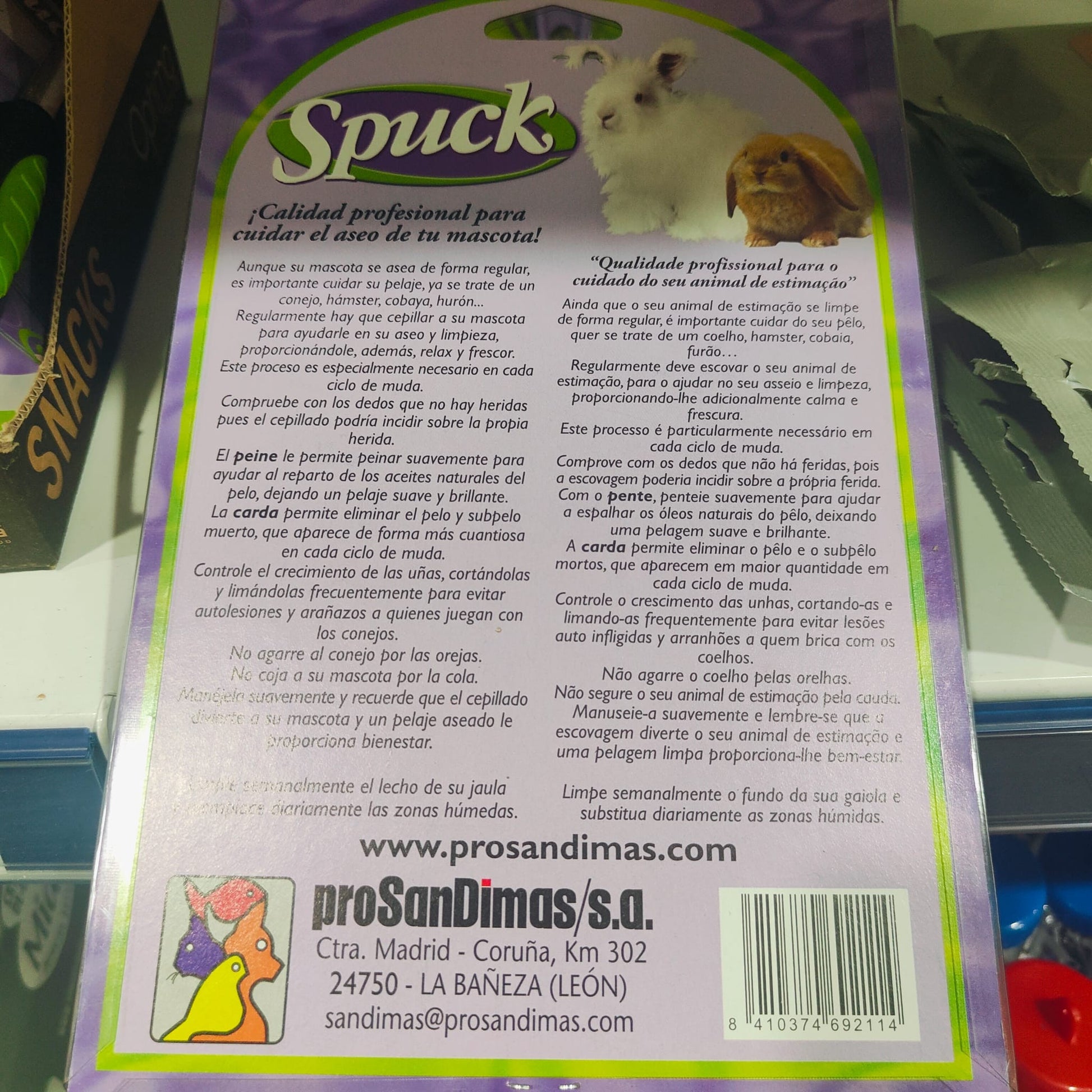 Calidad profesional para cuidar el aseo de su mascota.Aunque su mascota se asea de forma regular, es importante cuidar se pelaje, ya se trate de un conejo, hámster, cobaya, hurón...Regularmente hay que cepillar a su mascota para ayudarle en su aseo y limpieza proporcionándole, además, relax y frescor.Este proceso es especialmente necesario en cada ciclo de muda.Compruebe con los dedos que no hay heridas pues el cepillado podría incidir sobre la propia herida.Con el cepillo de nylon cepille suavemente para ayudar al reparto de los aceites naturales del pelo dejando un pelaje suave y brillante.La carda permite eliminar el pelo y subpelo muerto, que aparece de forma mas cuantiosa en cada ciclo de muda y si encuentra nudos utilice el peine cortanudos especialmente indicado en animales de pelo largo.Controle el crecimiento de las uñas, cortándolas y lijándolas frecuentemente para evitar autolesiones y arañazos a quienes juegan con los conejos.No agarre al conejo por las orejas.No coja a su mascota por la cola.Manéjala suavemente y recuerde que el cepillado divierte a su mascota y un pelaje aseado le proporciona bienestar. SET COMPUESTO DE:*CARDA*CORTAUÑAS*PEINE