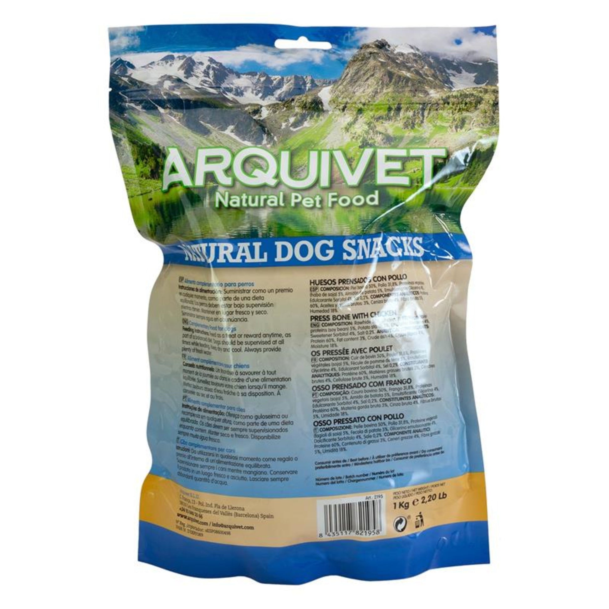 Snack en forma de huesos prensados, a base de carne de pollo. 100% naturales. Con un alto contenido en proteína animal y con pocas grasas (Producto Light). Alimento complementario para su perro, muy rico en nutrientes.Utilizar como un regalo o recompensa en cualquier momento, dentro de una dieta equilibrada.El perro debe ser supervisado en todo momento mientras se alimenta.Mantener en lugar fresco y seco, así como no exponer directamente a la luz solar.Dejar siempre agua dulce y fresca a disposición de su mascota.COMPOSICIÓN: Cuero crudo 50%, Pollo 31,8%, Proteinas vegetales 5%, Almidón de patata 5%, Glicerina 4%, Sorbitol 4%, Sal 0,2%.COMPONENTES ANALÍTICOS: Proteína 60%, Aceites y grasas brutos: 3%, Ceniza bruta 4%, Fibra bruta 5%, Humedad 18%.