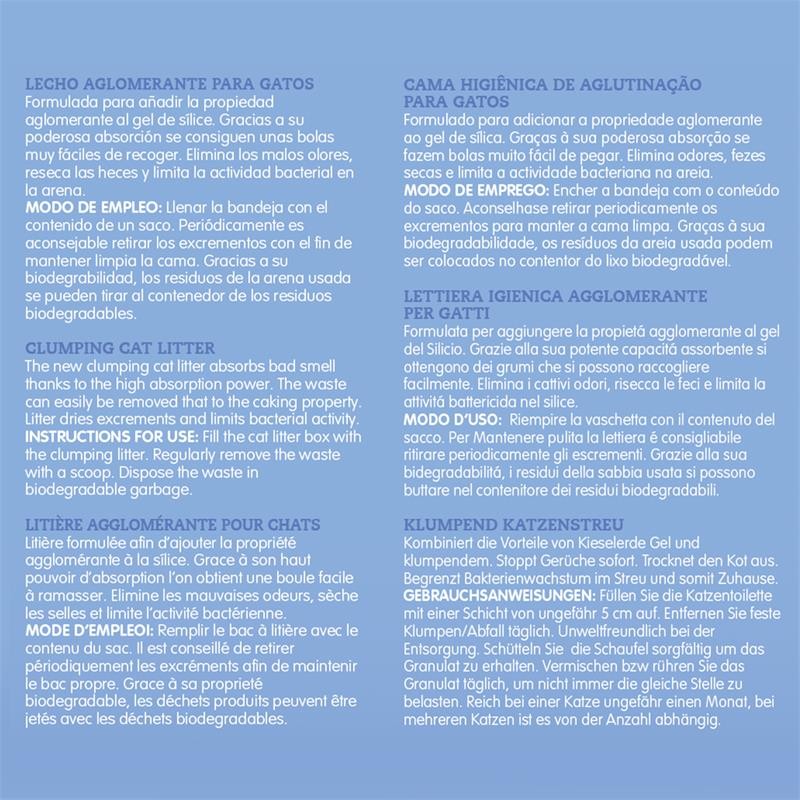 Arena aglomerante de sílice crystal para gatos que absorbe y forma bolas fáciles de recoger. Elimina olores, reseca heces y controla bacterias. Biodegradable y ecológica. Presentación de 3,8 litros (1,5 kg) con duración aproximada de 30 días.